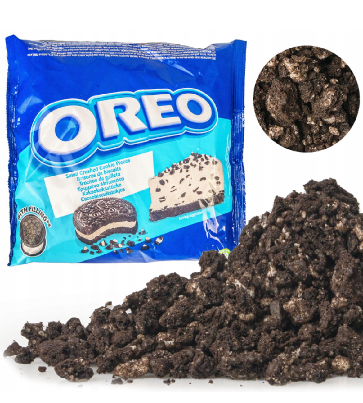 Opis: Słynne ORYGINALNE ciasteczka OREO . Oryginalna posypka Oreo to kultowy smak ciasteczek Oreo. Posypka idealnie sprawdza się jako dodatek na gofry bąbelkowe, lody soft i gałkowe oraz słodkie desery.