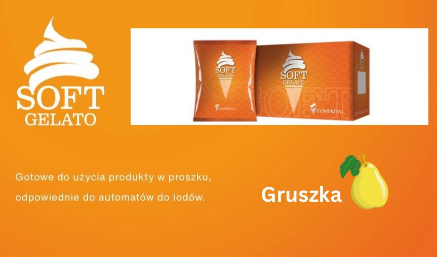 Ważne informacje: mieszanka bazowa do lodów włoskich o smaku GRUSZKOWYM - jest to półprodukt do lodów i cukiernictwa - przeznaczony wyłącznie dla przemysłu i laboratoriów rzemieślniczych, nieprzeznaczony do bezpośredniego spożycia.![]()